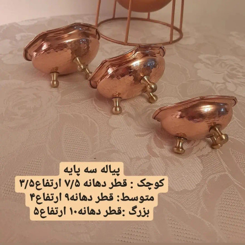 پیاله مسی سه پایه سایز 3 ارتفاع 6سانت قطر دهانه 12 سانت