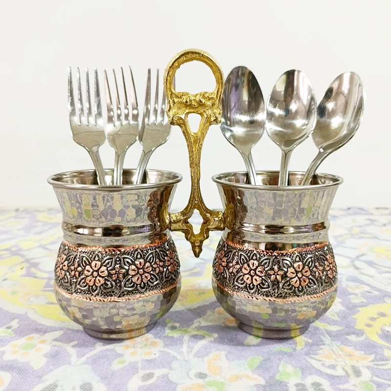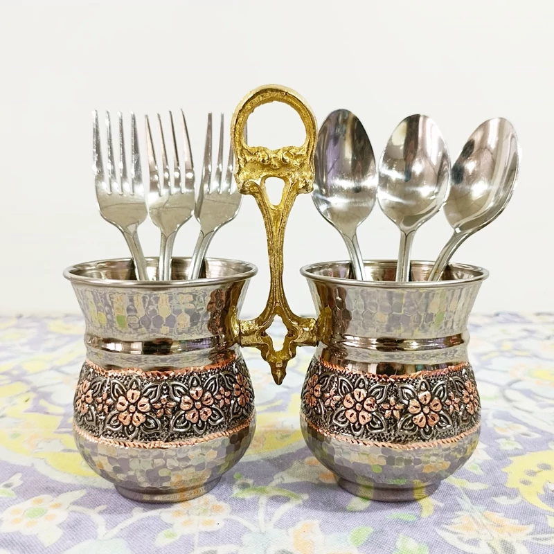 جا قاشقی دوقلو مسی گل برجسته تراش شده دو رنگ