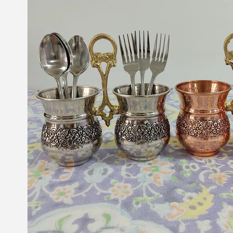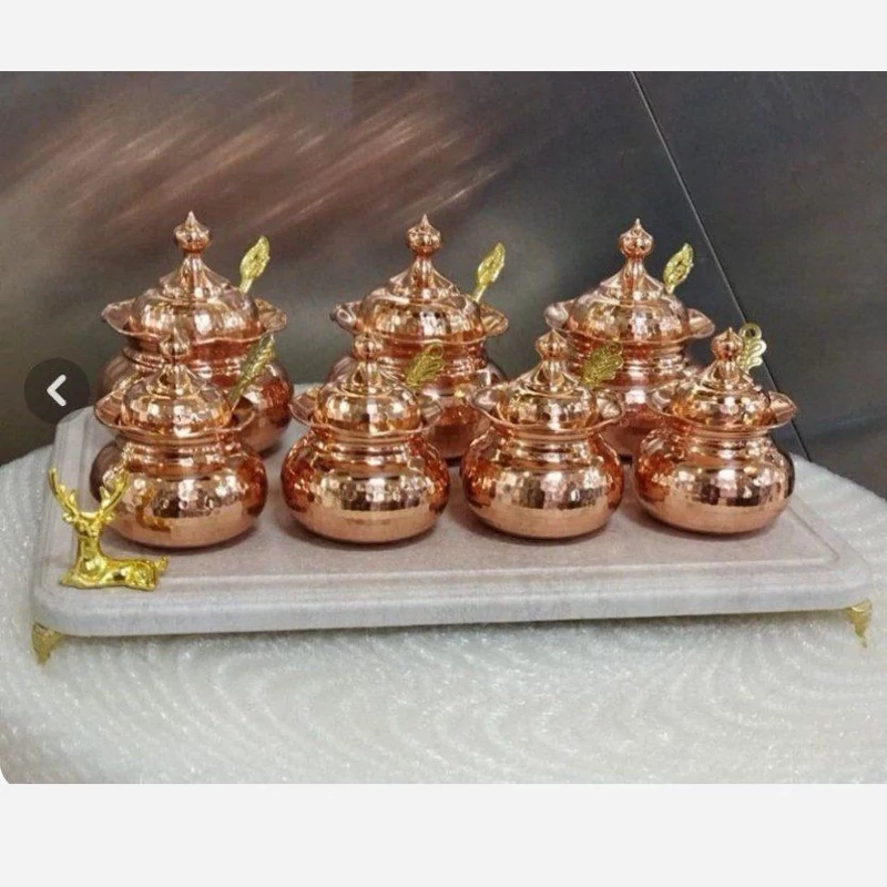 پاسماوری 7 تایی مسی چکشی با جعبه و استند و قاشق