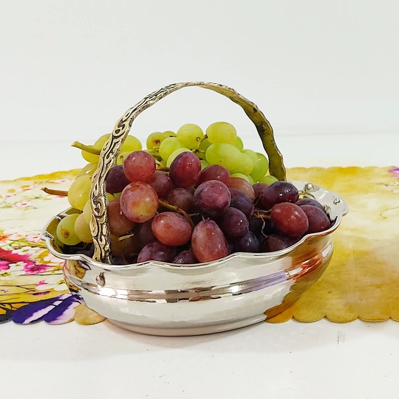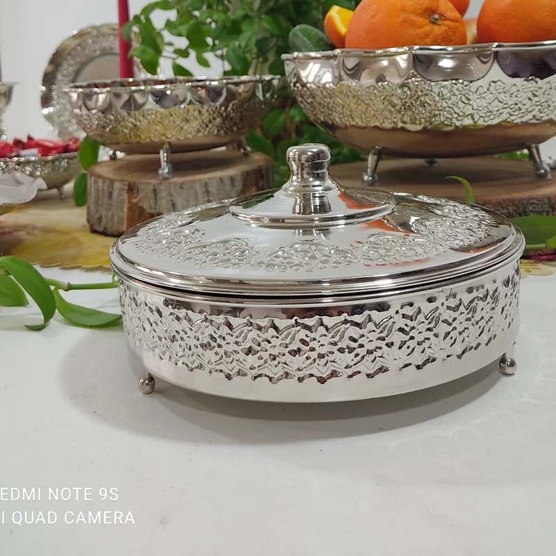 سبد پذیرایی مسی کروم دست ساز زنجان مناسب شکلات و آجیل چکش کاری شده و رنگ ثابت