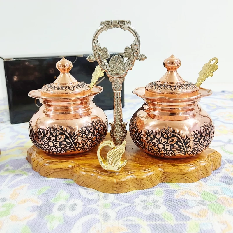 جا ادویه دوتایی تمام مسی قلم کاری قاشق دار نانو