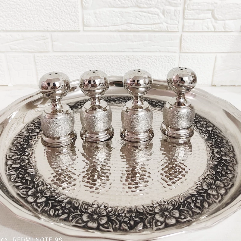 بسته 6 عددی نمکدان مسی مدل شنی کمر باریک دست ساز زنجان با آبکاری نقره ای