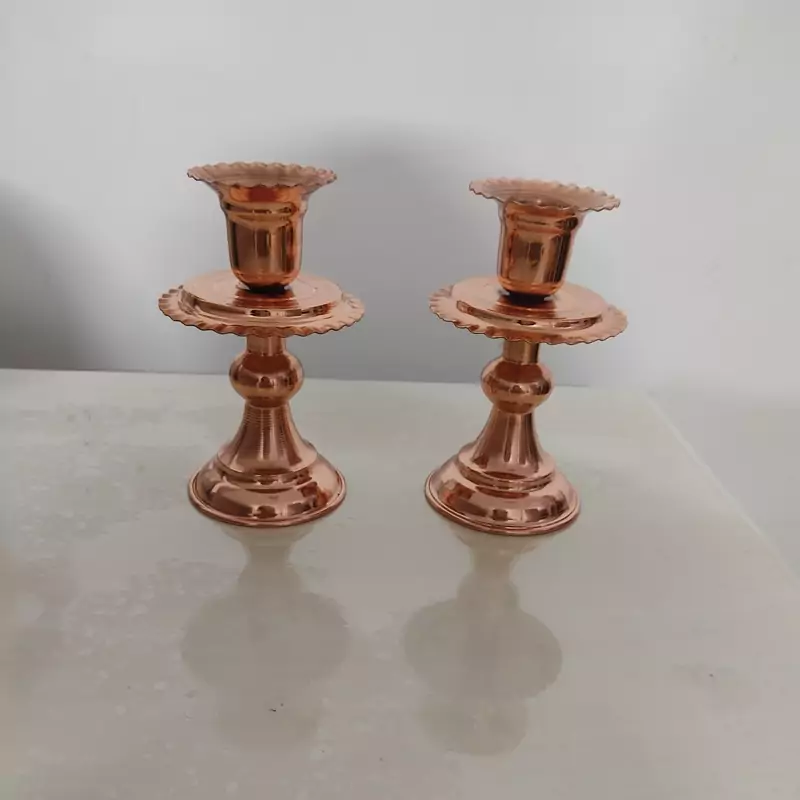 شمعدان مسی دو عدد باهم کار براق و شیک نانو شده