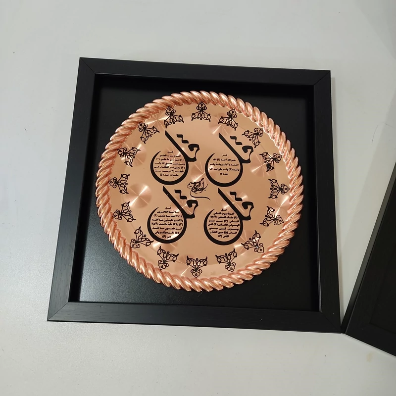 تابلو دیوارکوب مسی نانو شده با قاب الله و وان یکاد و چهار قل