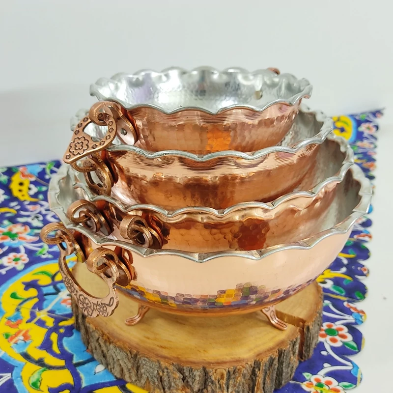 کاسه تمام مسی گوشواره دار آتامیز در 5 سایز داخل قلع اعلا میوه یا سوپ آجیل و...