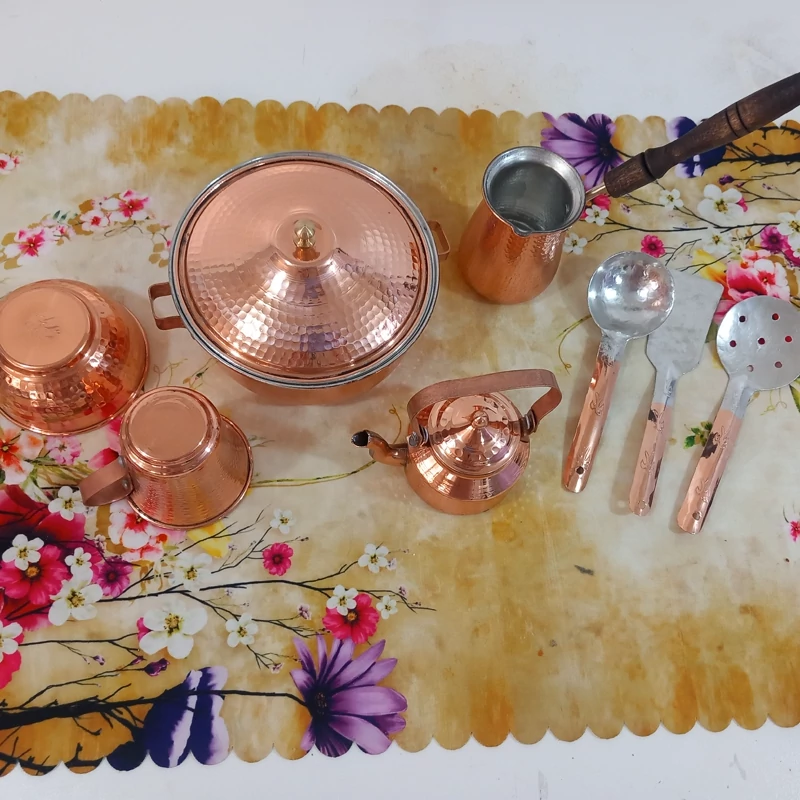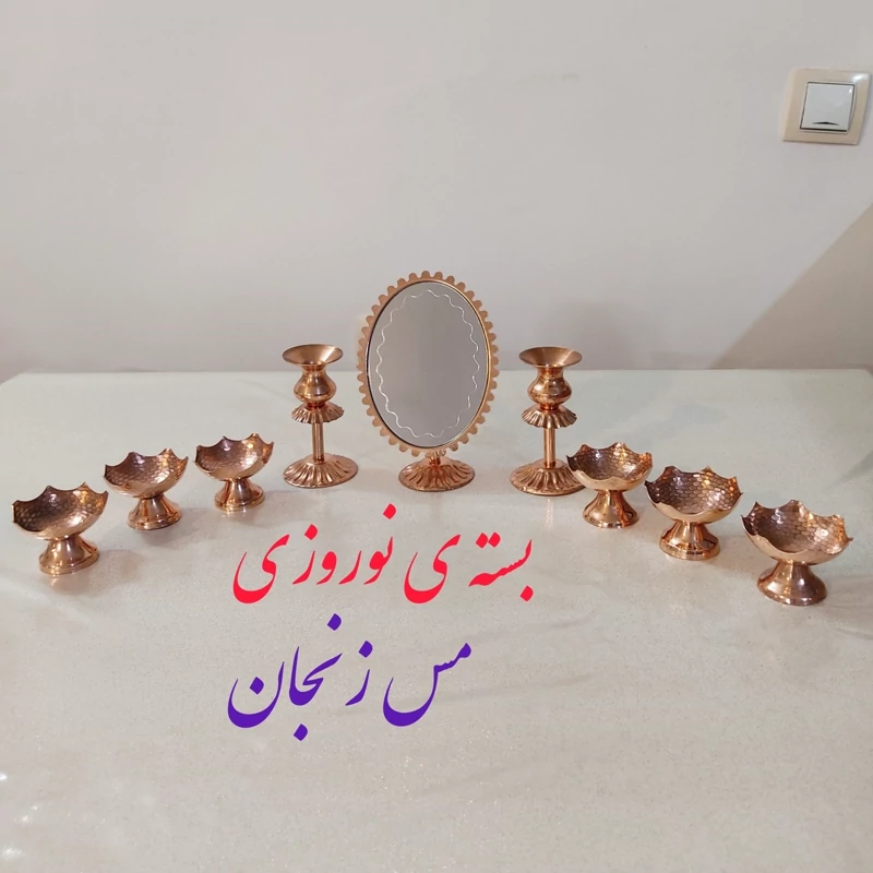 پک هفت سین زیبای مسی زنجان رنگ ثابت زیبا مناسب هدیه و دکور و هفت سین