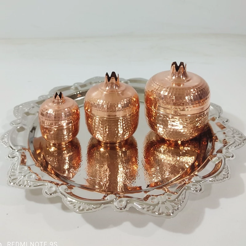 سه سایز انار مسی دست ساز برای تنقلات و قندان