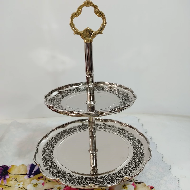 شیرینی خوری دو طبقه کروم مسی کار زیبا چکشی و براق