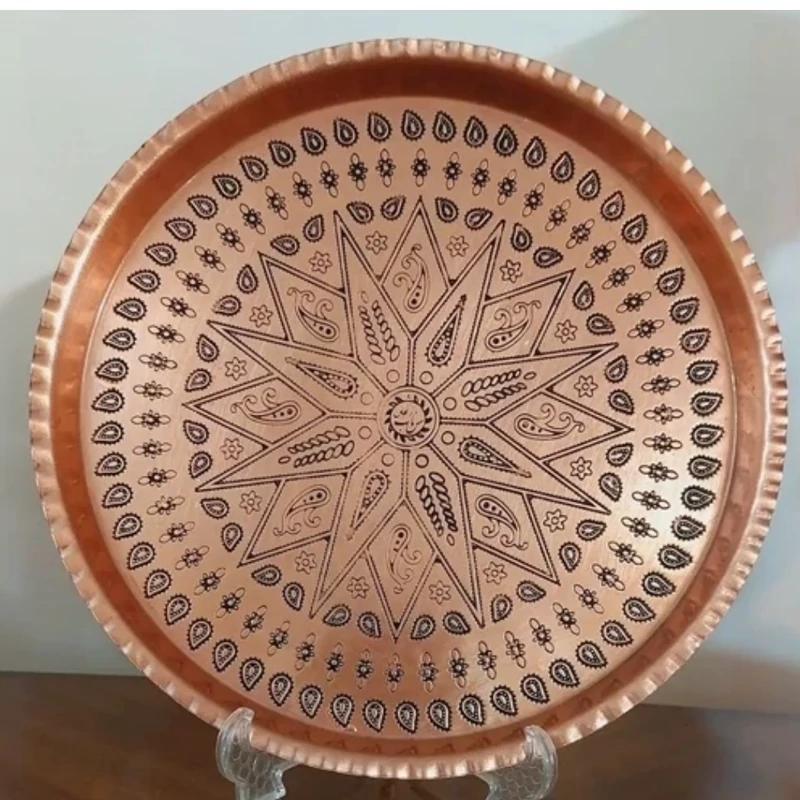 سینی مسی زنجان طرح برجسته 29سانتی مناسب پذیرایی و دکوراسیون