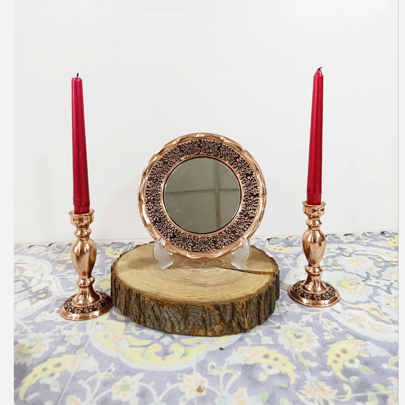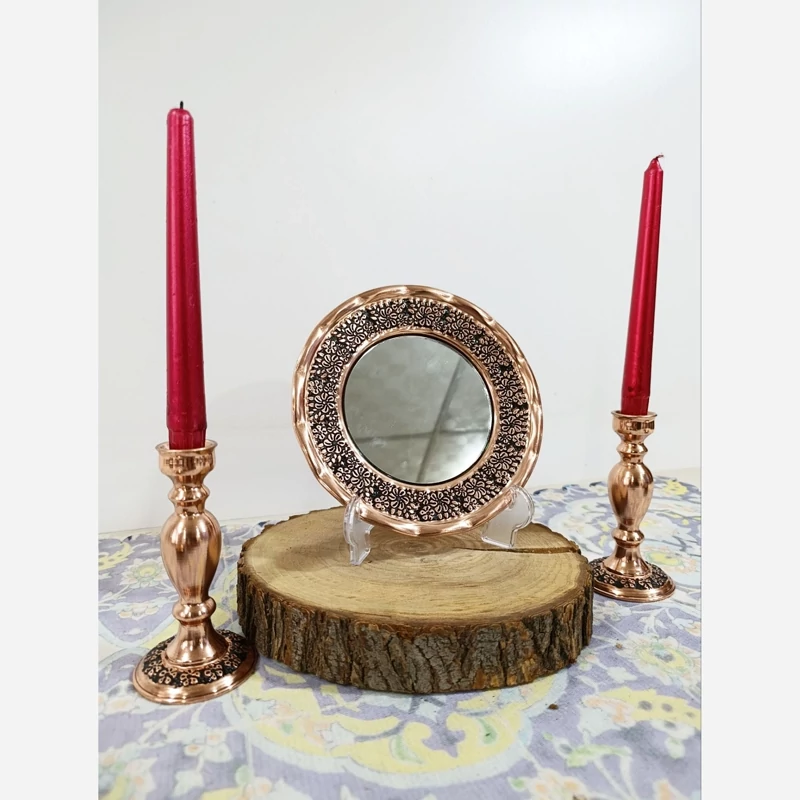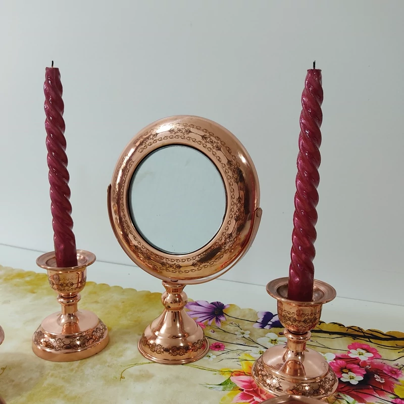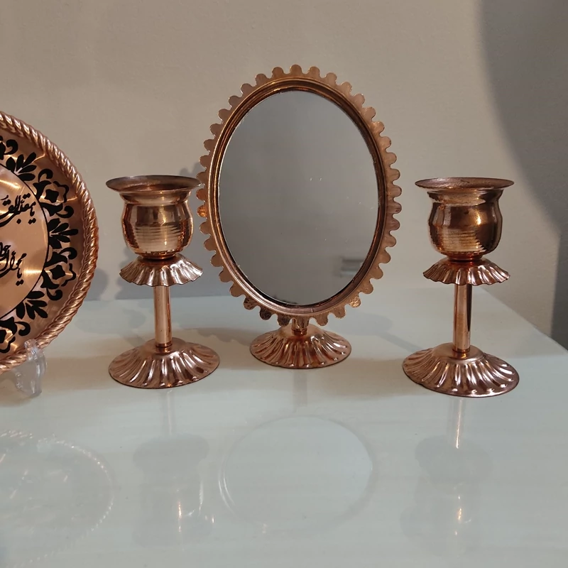 آینه و شمعدان تمام مس نانو شده رنگ ثابت