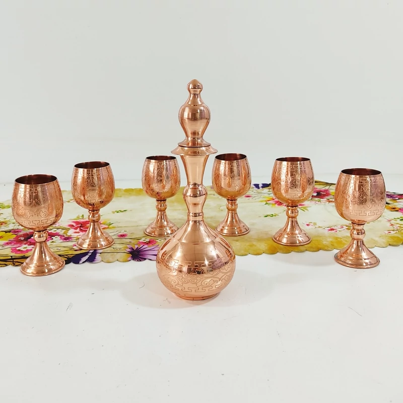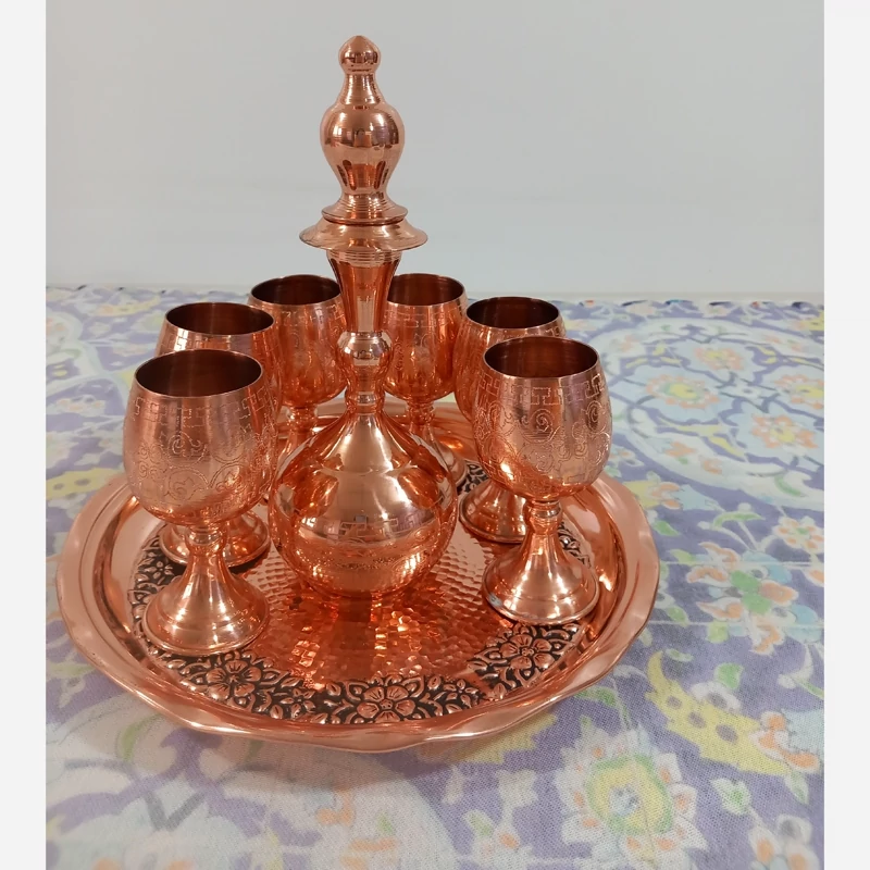 تنگ و جام (6 عددی) و سینی مسی زنجان نانو شده رنگ ثابت