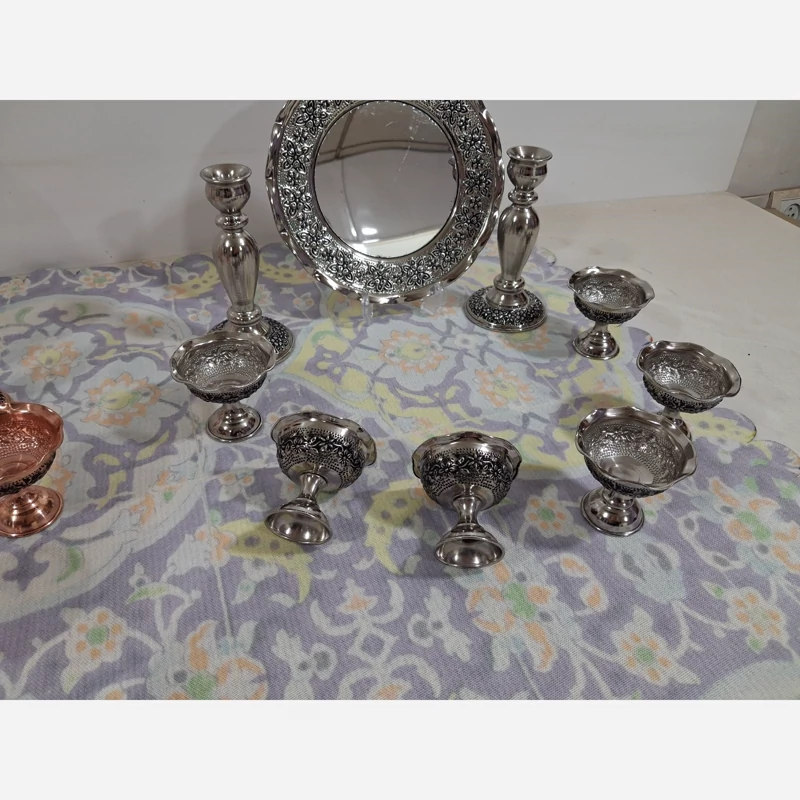 هفت سین مسی کروم شده شش تایی با آینه شمعدان گلبرگ