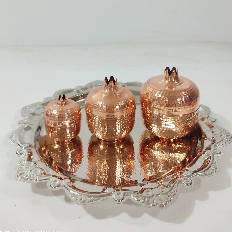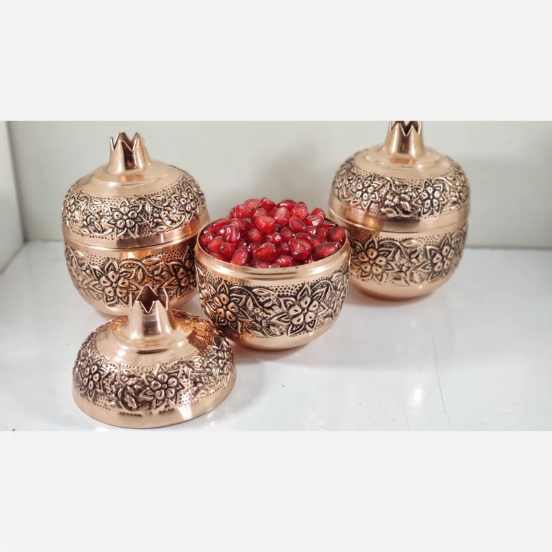 سه سایز قندان انار مسی زنجان رنگ ثابت و دست ساز فروش عمده و تکی