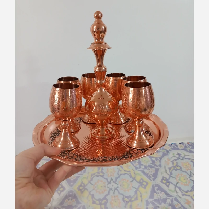 تنگ و جام شش عددی و سینی مسی زنجان نانو شده رنگ ثابت