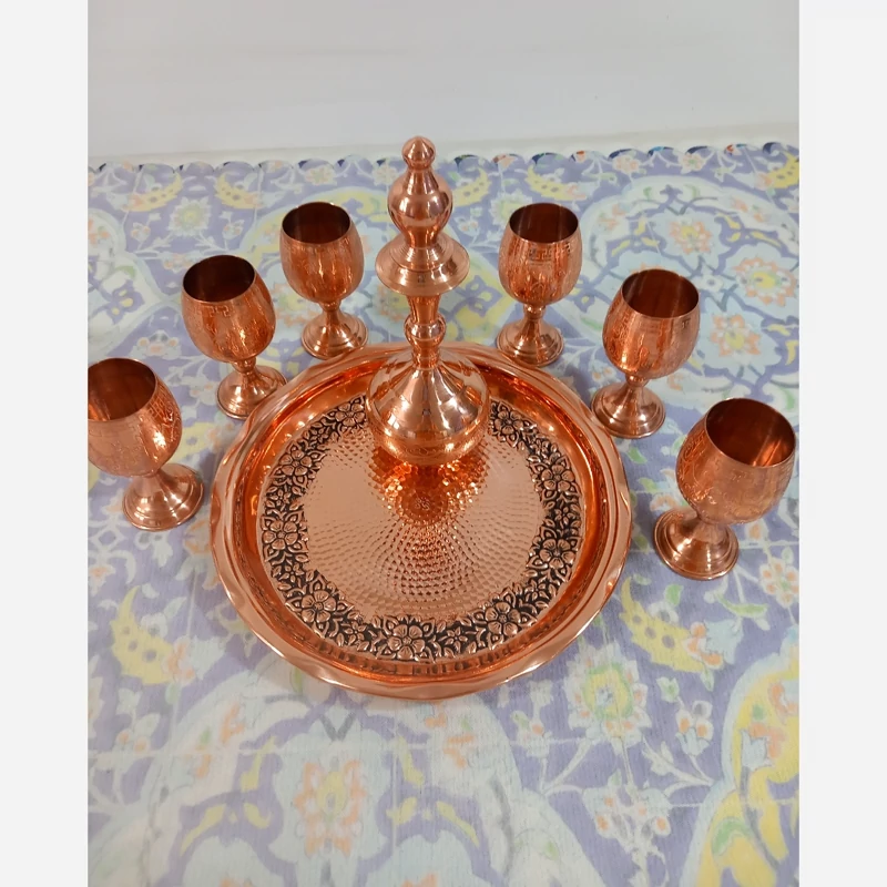 تنگ و جام شش عددی و سینی گلبرگ قطر28 مسی زنجان نانو شده رنگ ثابت