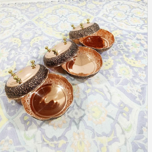 ست سه تیکه مسی یلدایی زیبا گلبرگ نانو