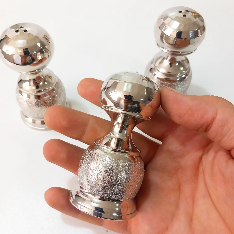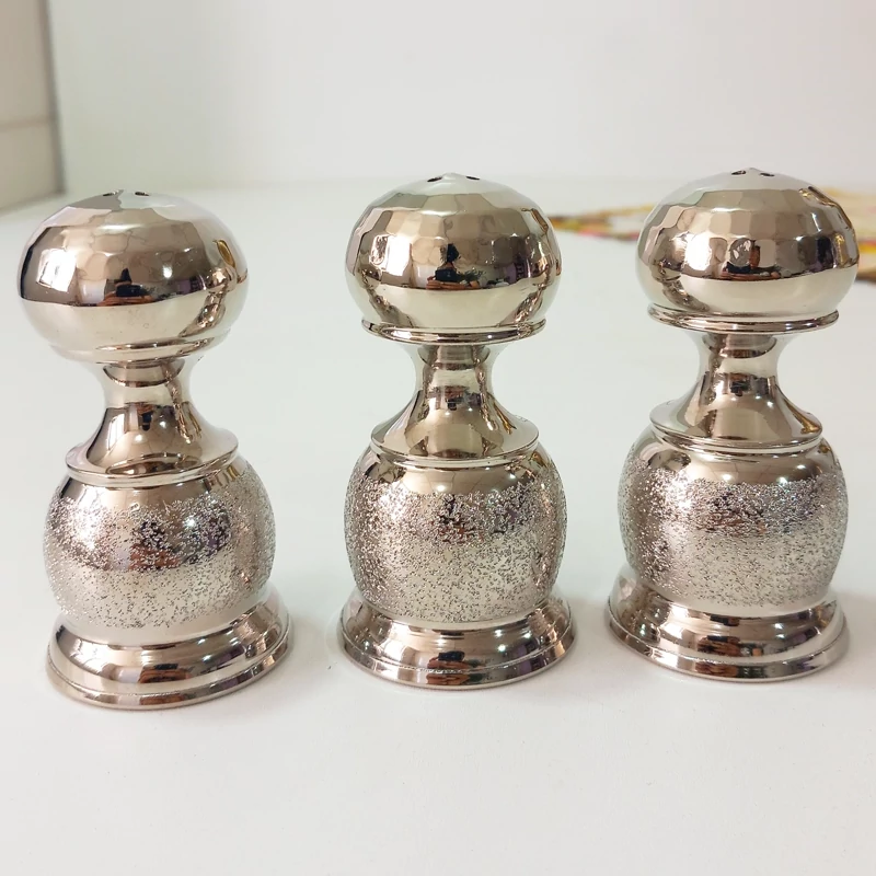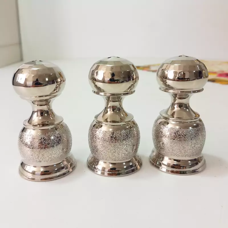 نمکدان مسی 3تایی زنجان با روکش کروم رنگ ثابت مدل شنی