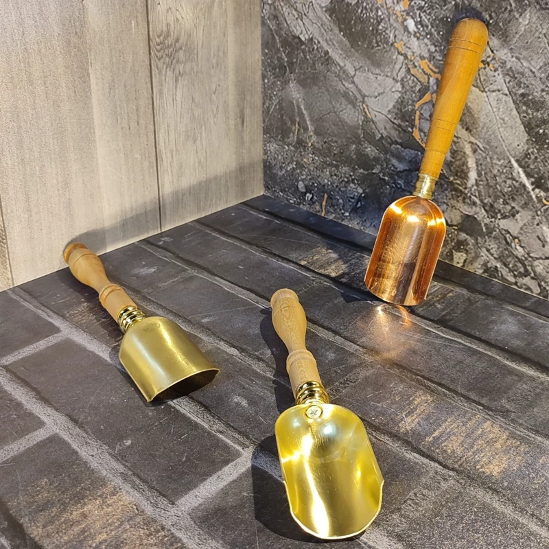 قاشق آجیل مسی زنجان با رنگ ثابت و دسته چوبی در دو رنگ مسی و طلایی