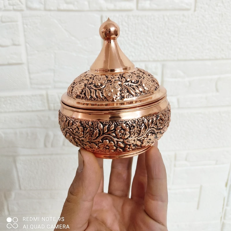 قندان مسی دست ساز قلم کاری طرح گلبرگ رنگ ثابت