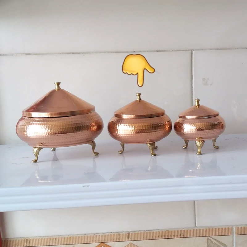 قابلمه سیسمونی سه تایی چکشی تمام مسی دسته دار نانو شده