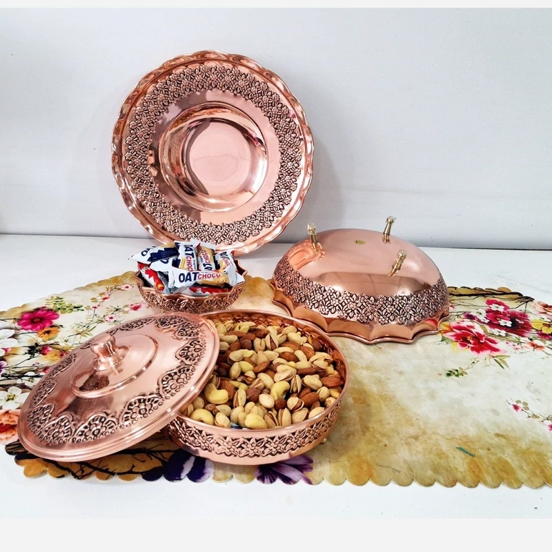 سرویس پذیرایی چهار تیکه طرح گل برجسته مسی