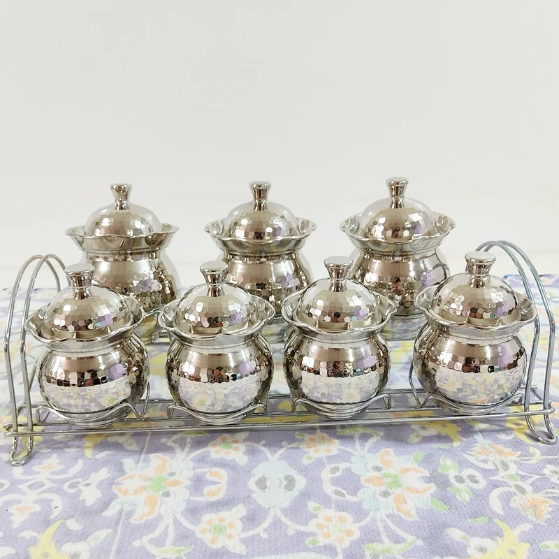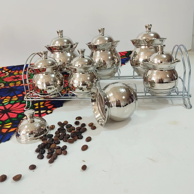 پاسماوری هفت تایی چکشی مسی زنجان استند فلزی و آبکاری کروم رنگ ثابت