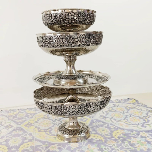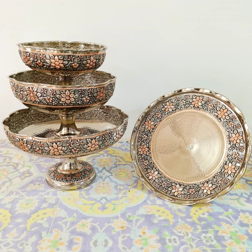 ظروف پذیرایی مسی چهارتیکه مناسب نوروز میوه خوری آجیل شکلات شیرینی خوری