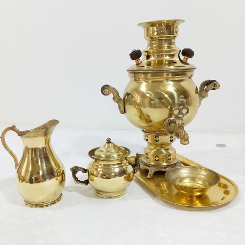 سماور ذغالی برنجی یک لیتری با سرویس اعلا