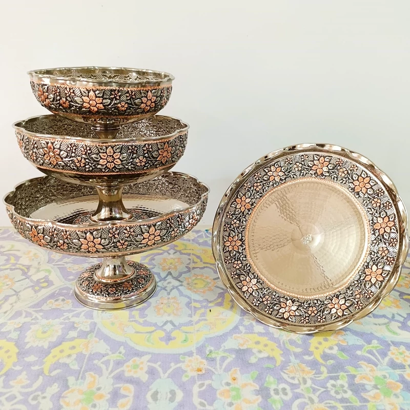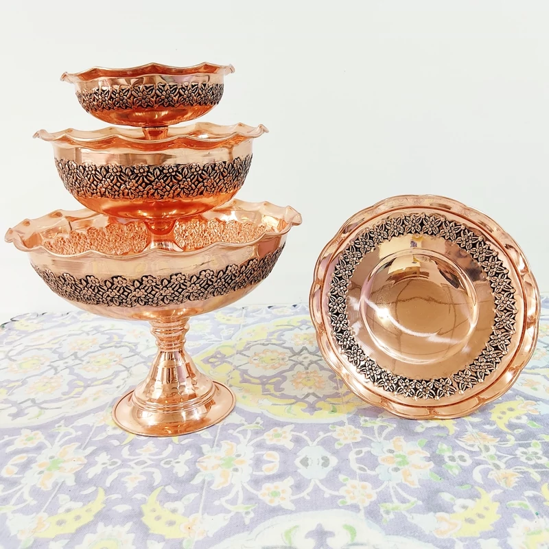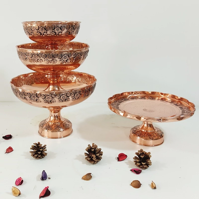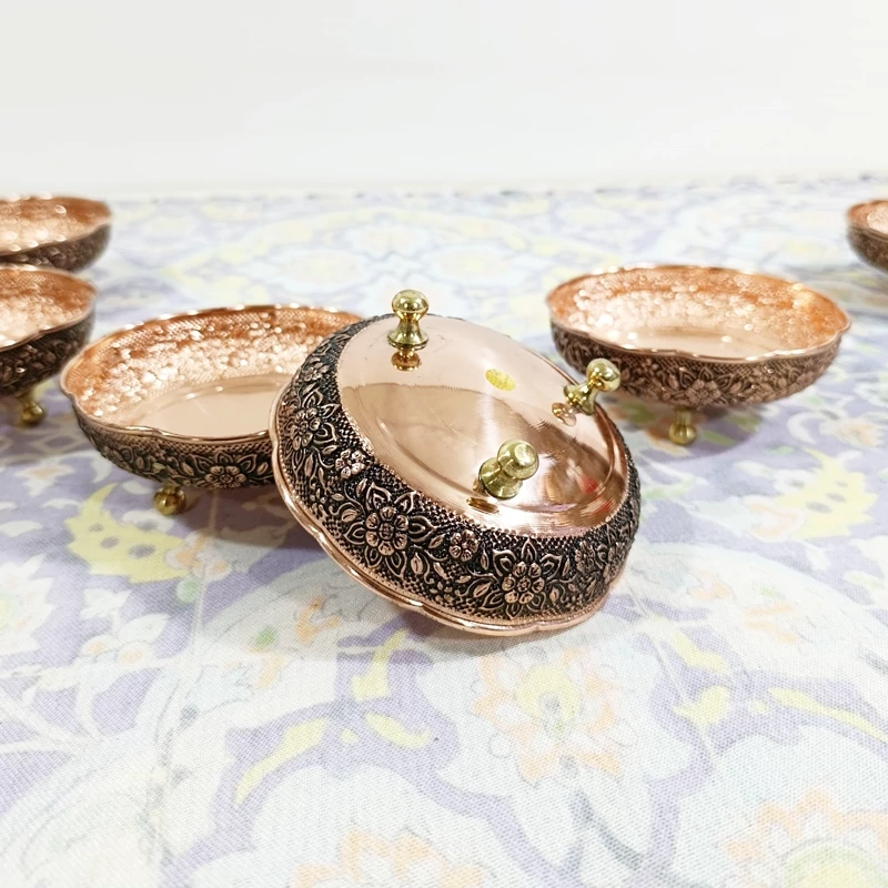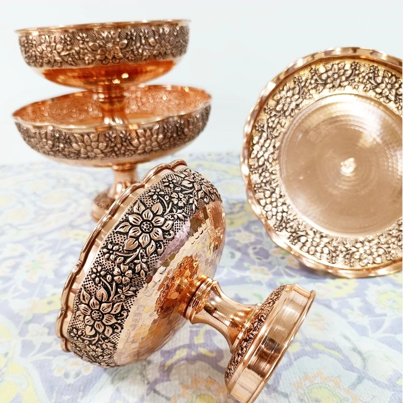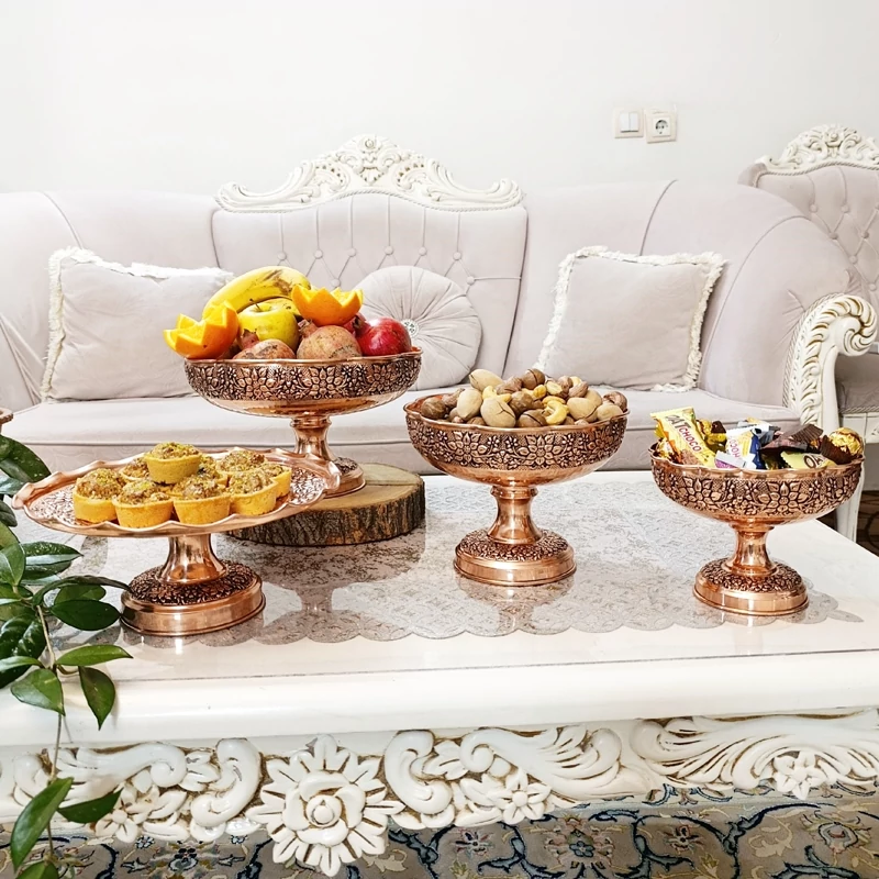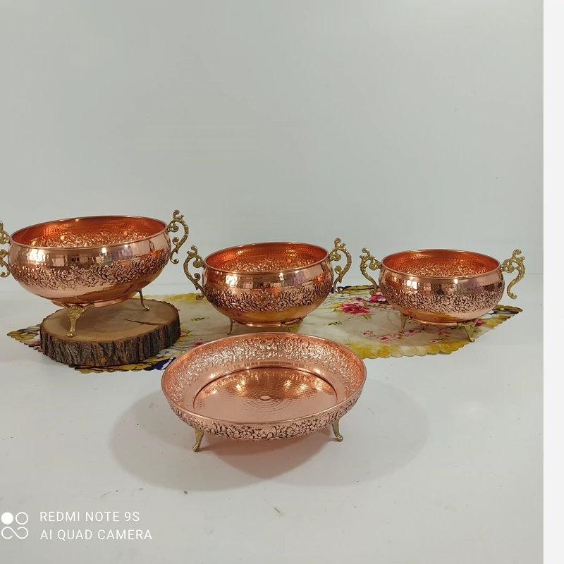ظروف پذیرایی مسی چهارتیکه مناسب نوروز میوه خوری آجیل شکلات شیرینی خوری
