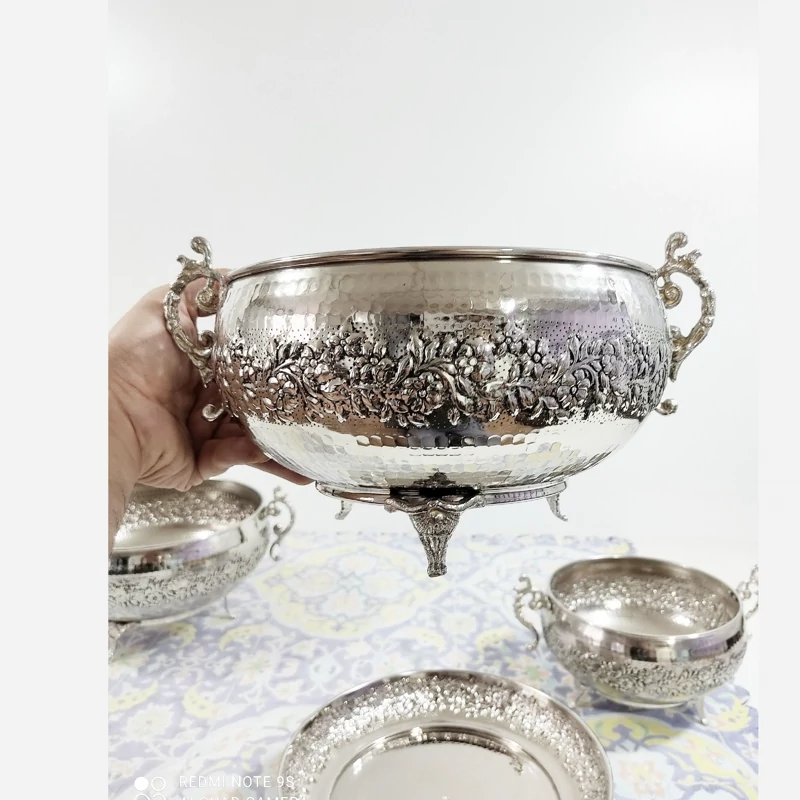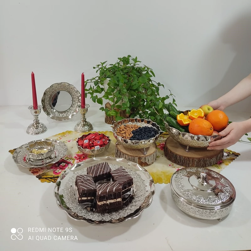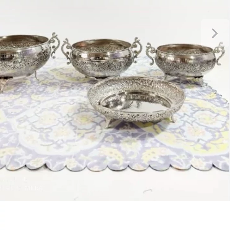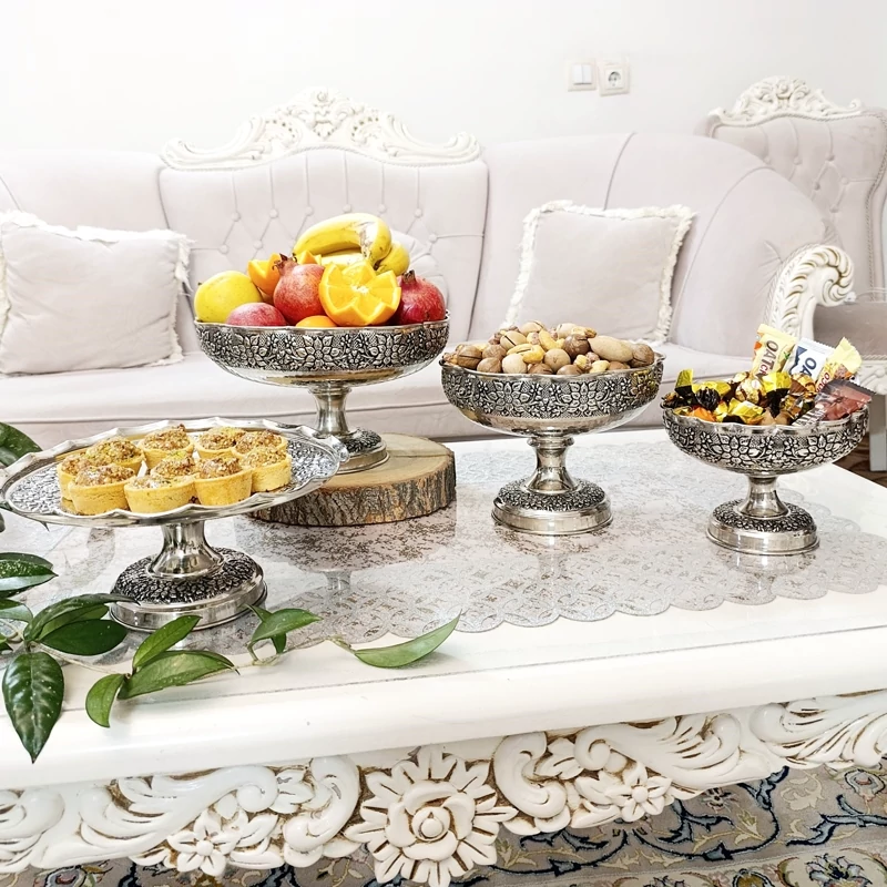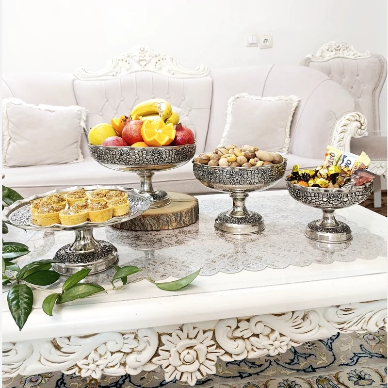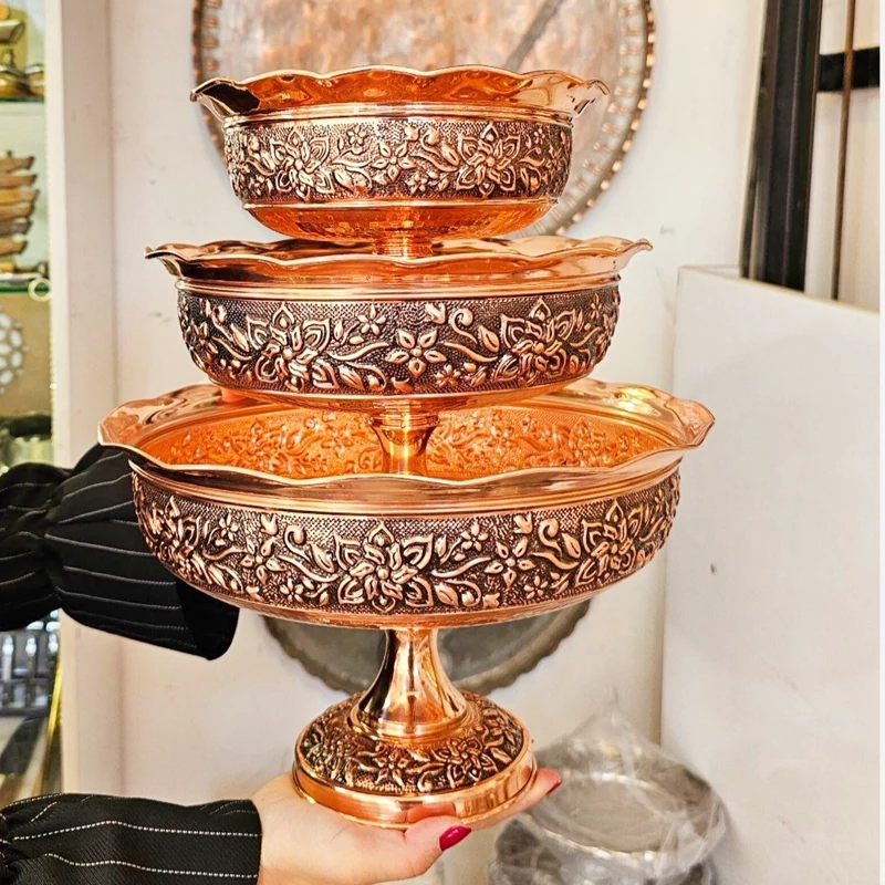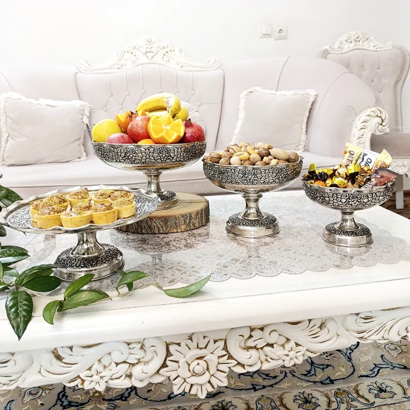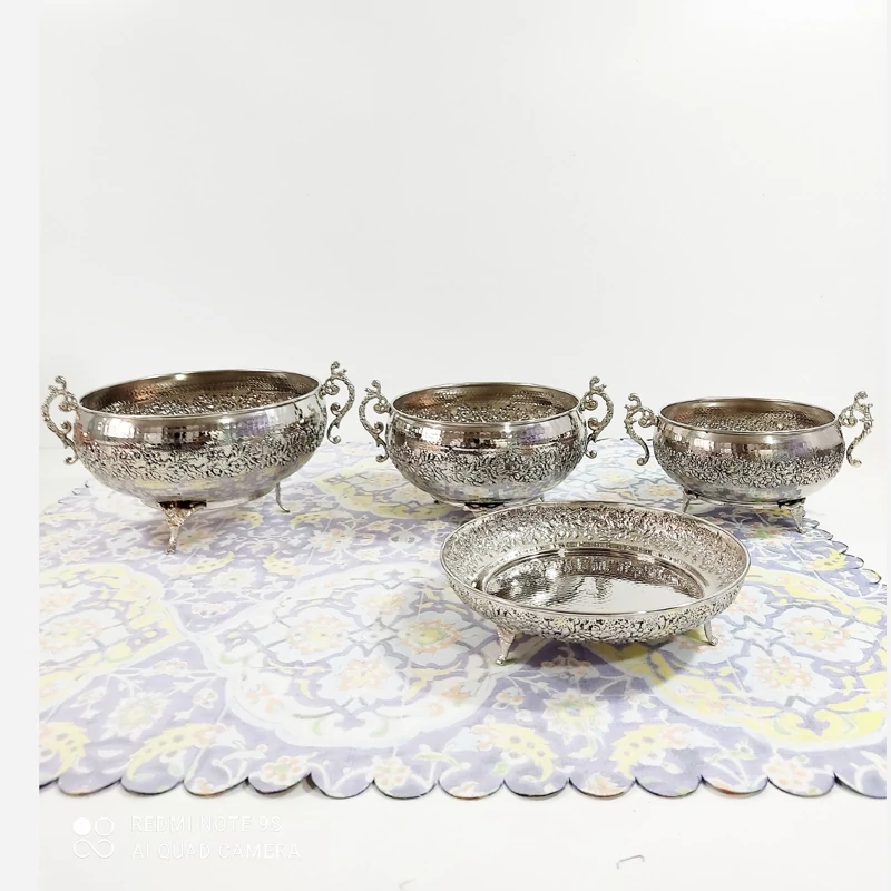 ظروف پذیرایی مسی چهارتیکه مناسب نوروز میوه خوری آجیل شکلات شیرینی خوری