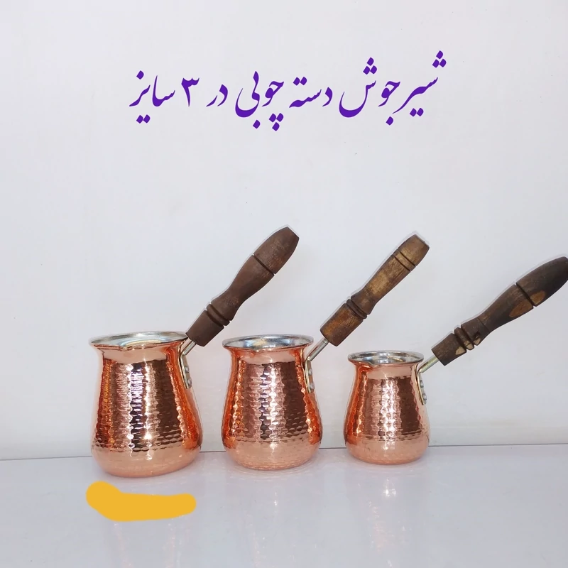 شیر جوش (قهوه جوش) بزرگ مسی دسته چوبی تولید زنجان