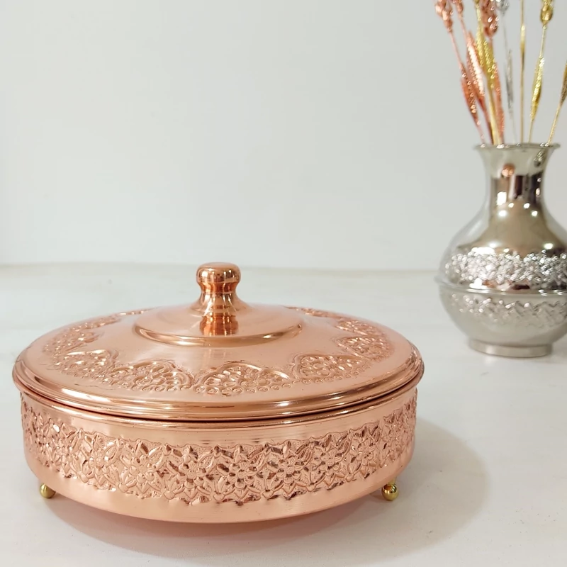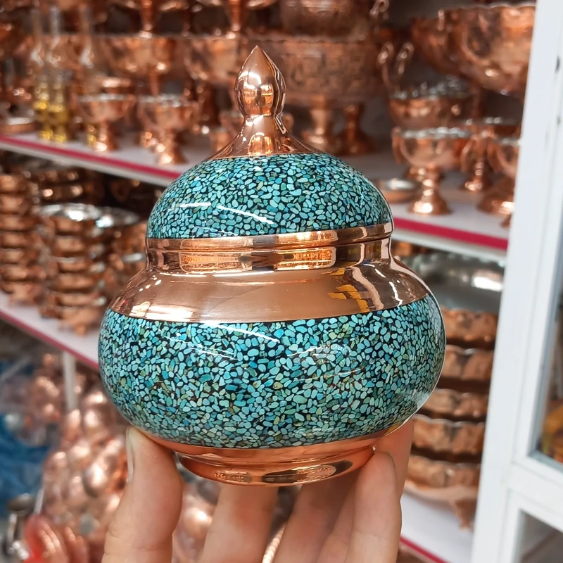 قندان یا تنقلات و شکلات خوری فیروزه کوب مسی با مهر استاندارد