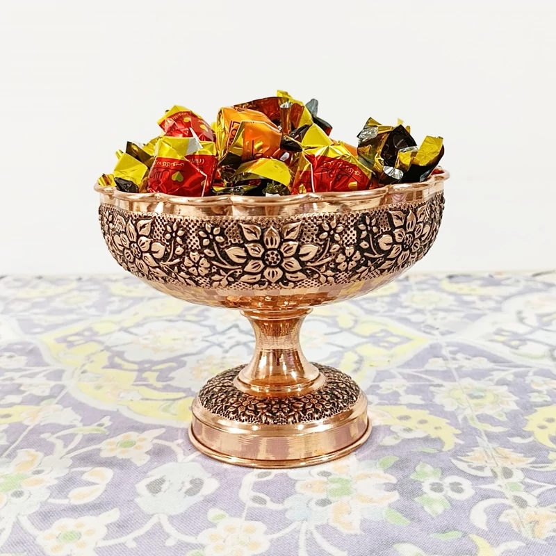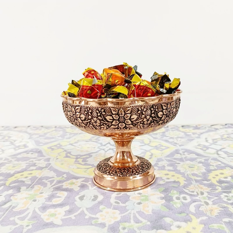 شکلات خوری قلم کاری طرح گل برجسته مسی در دار