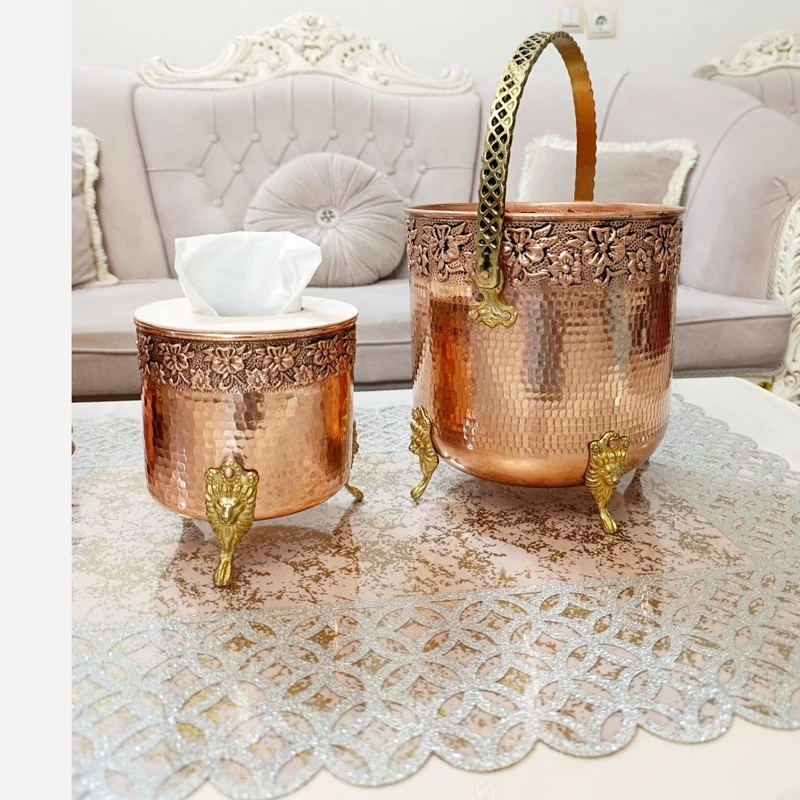 سرویس جا دستمال کاغذی مسی و سطل زباله نانو شده جا کلنکسی براق