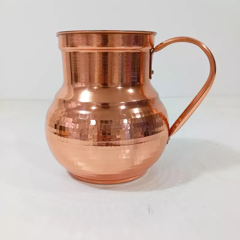 پارچ تمام مس زنجان با دسته مسی نانو و رنگ ثابت چکش کاری شده