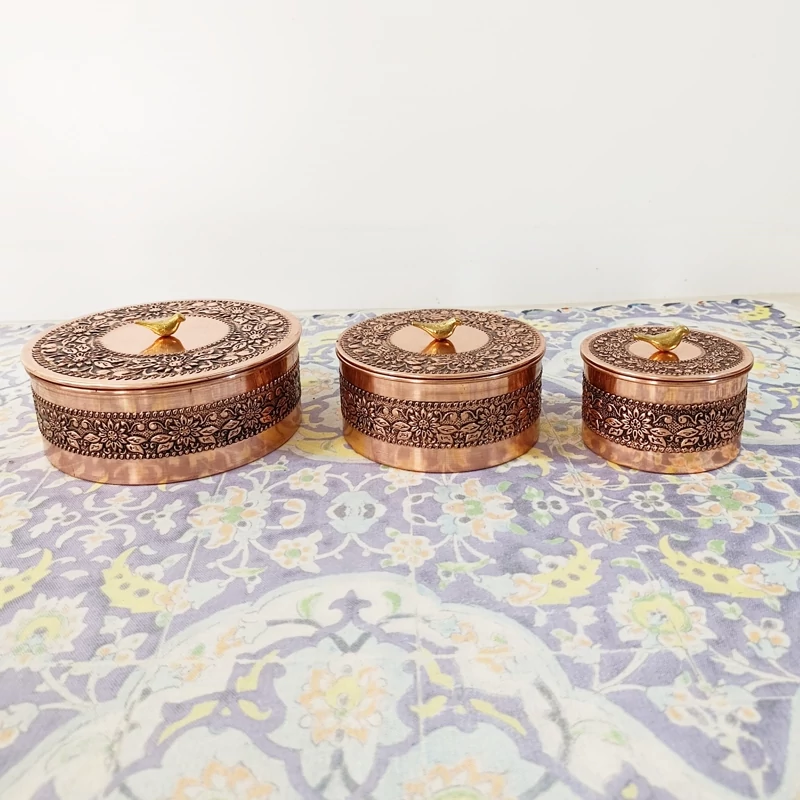 قندان مسی سه عددی گلبرگ زیبا نانو شده