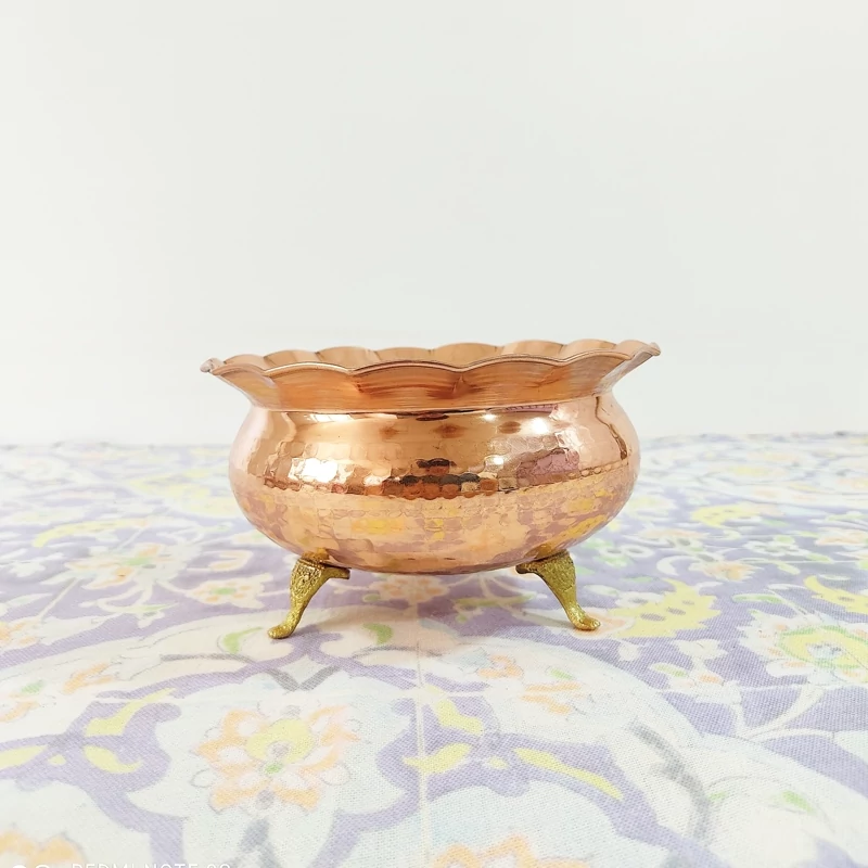 نقل خوری مسی دست ساز زنجان مدل 3 پایه چکش کاری رنگ ثابت