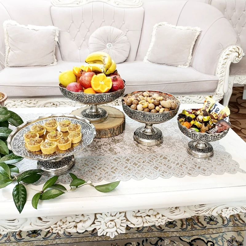 سرویس پذیرایی مسی کروم گل برجسته سیاه قلم 4 تیکه نانو رنگ ثابت
