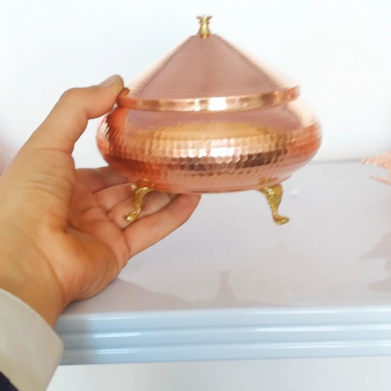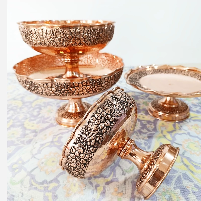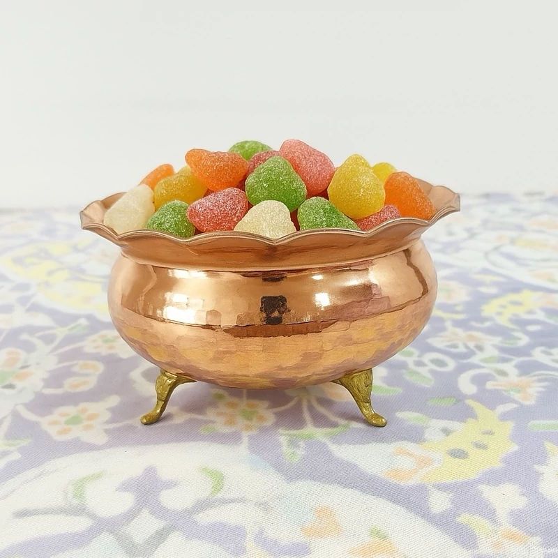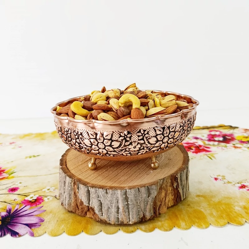 ظرف مسی پایه دار مناسب سرو آجیل تخمه و شکلات خرید مستقیم از تولیدی