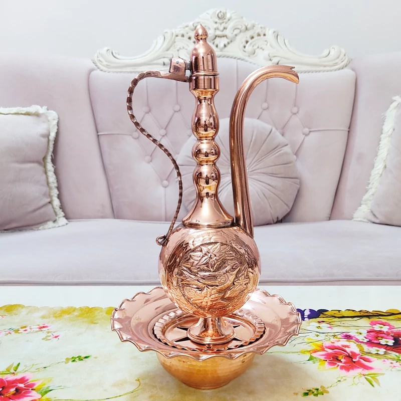 آفتابه لگن تمام مسی قلم کاری زنجان رنگ ثابت