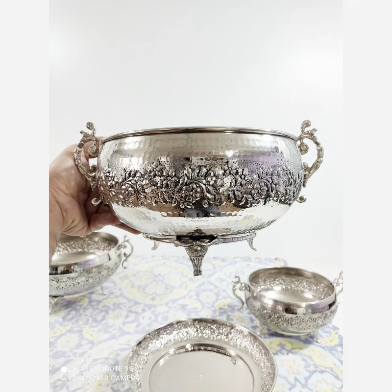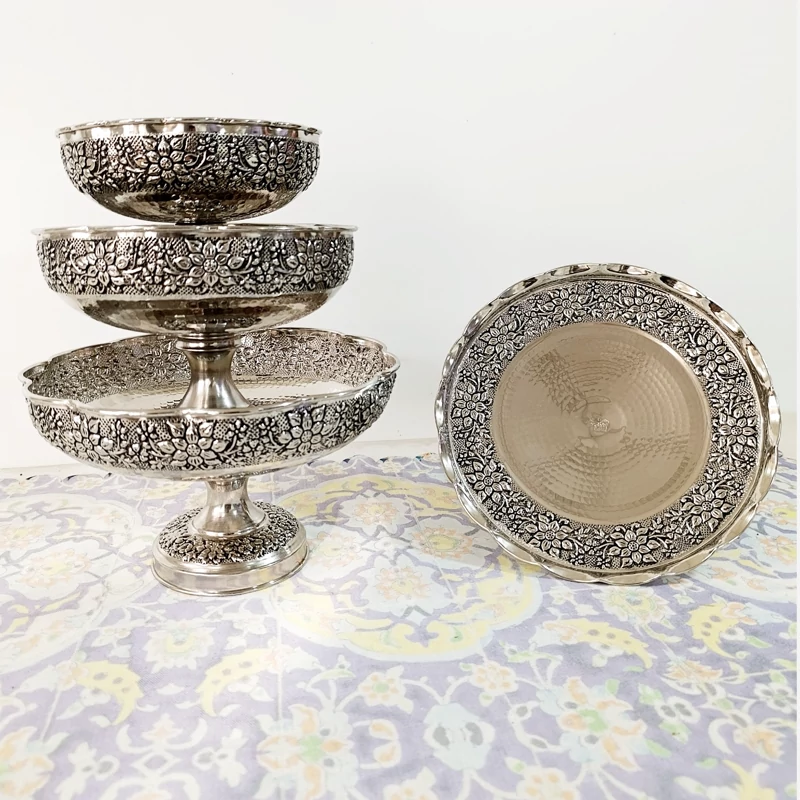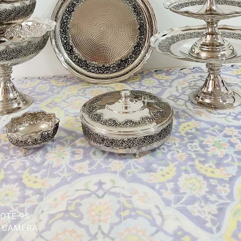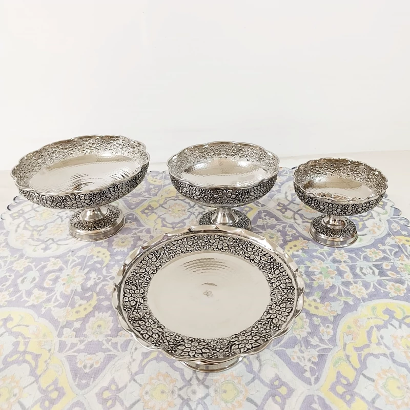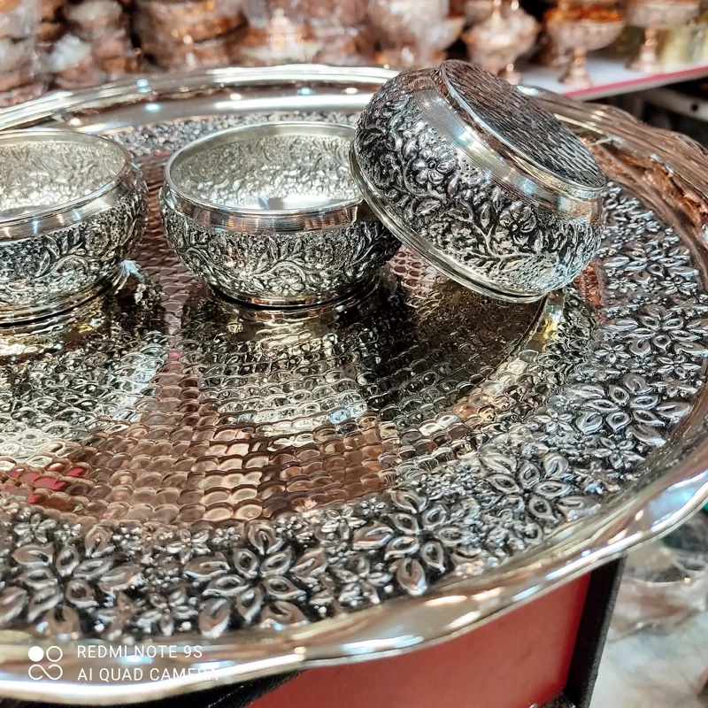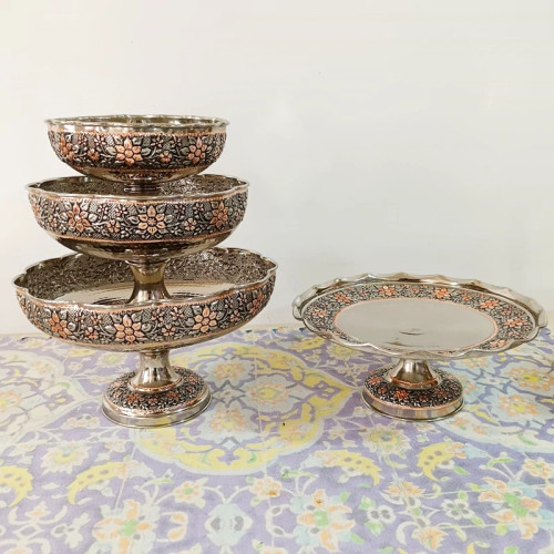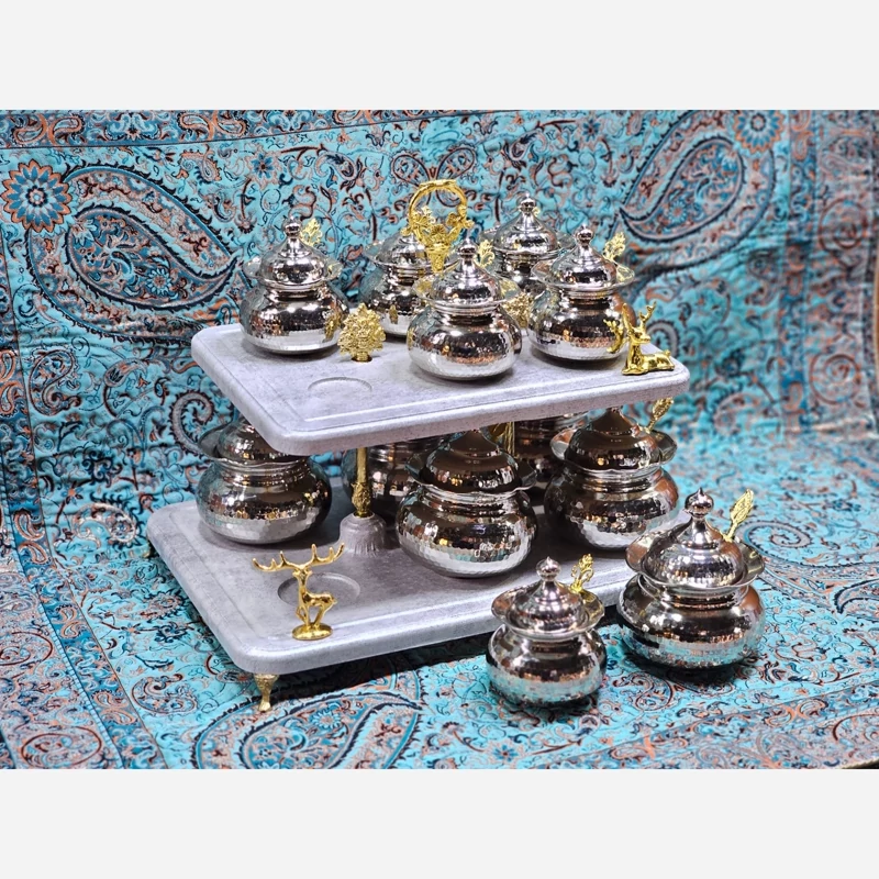 سرویس پذیرایی مسی کروم نقره ای و تراش شده با دست