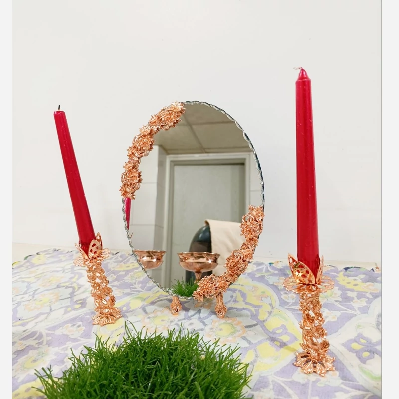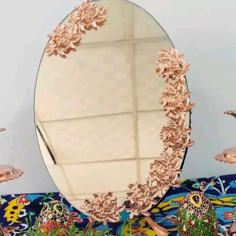 آینه زیبای گل کاری پایه دار مسی ارتفاع 30 سانت هفت سین