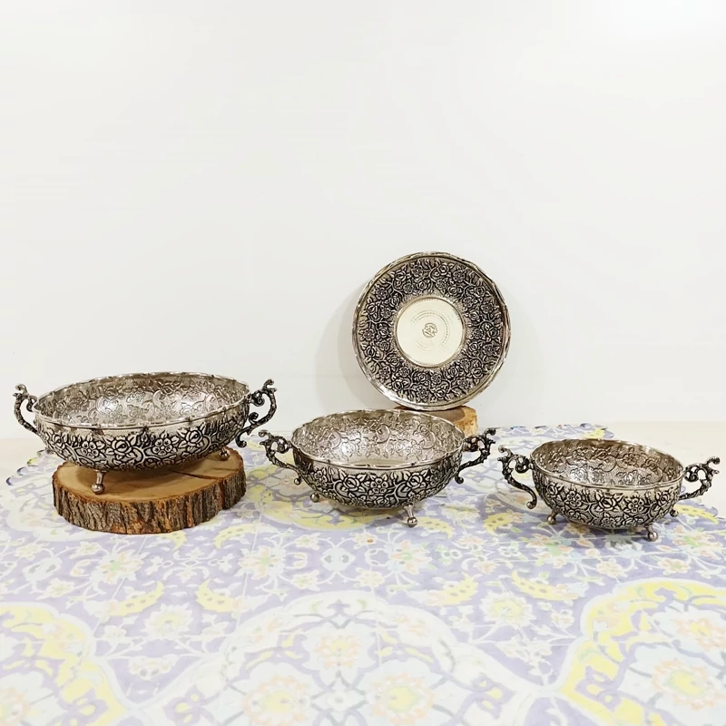 کاسه هفت سین شش تایی مسی کروم زیبا و جدید کار شیک سیاه قلم