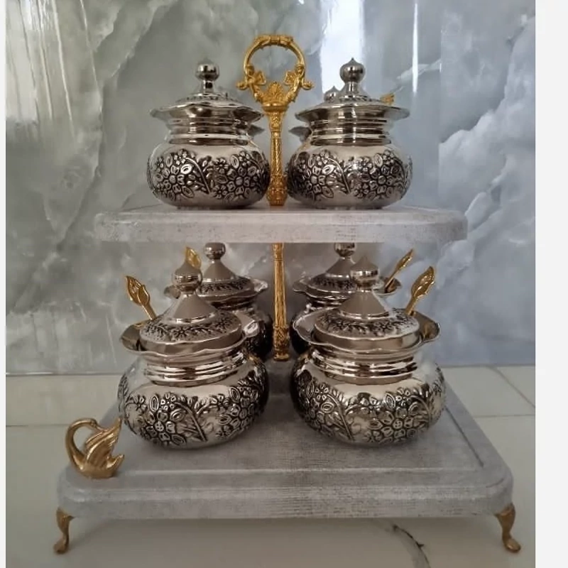 سرویس تمام مسی تنگ مصری مسی کروم تراش 8 تیکه زیبای دکور و قابل استفاده