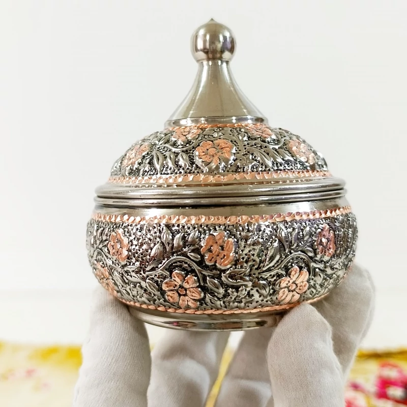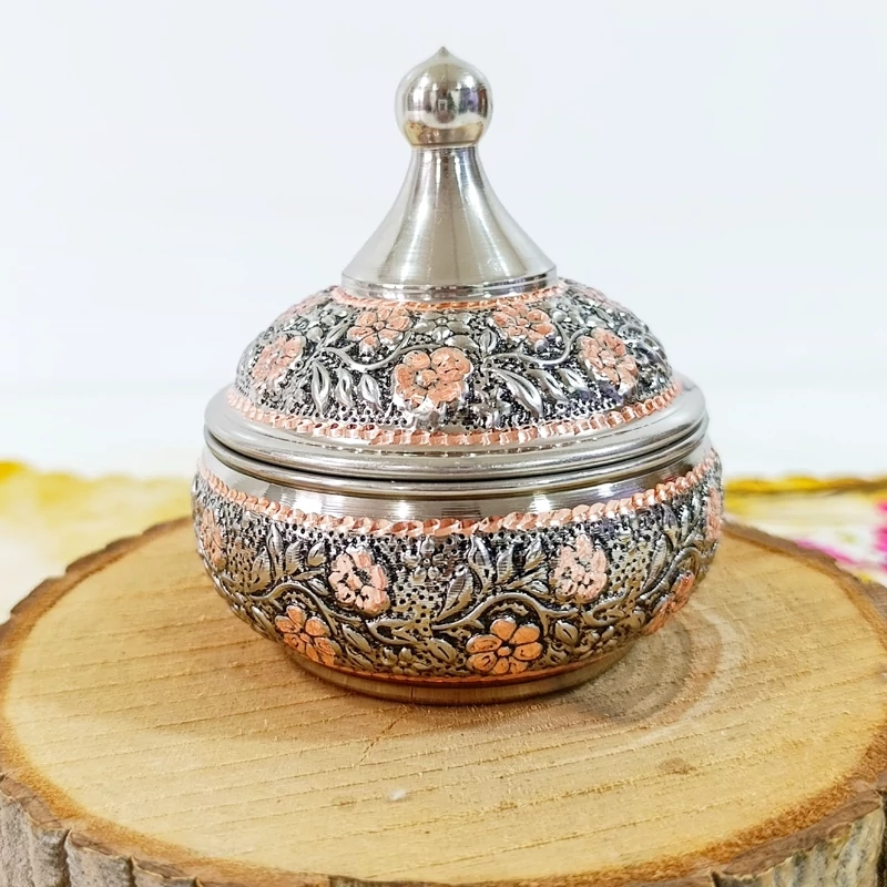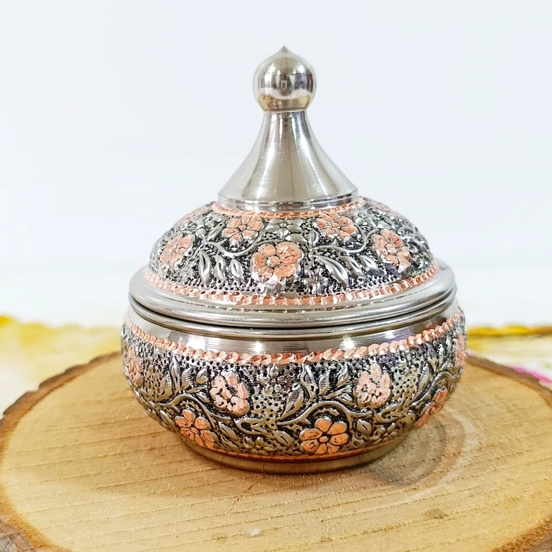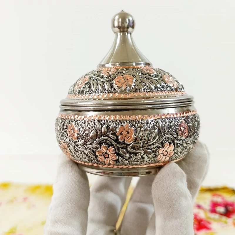 قندان مسی گل برجسته کروم تراش شده دست ساز