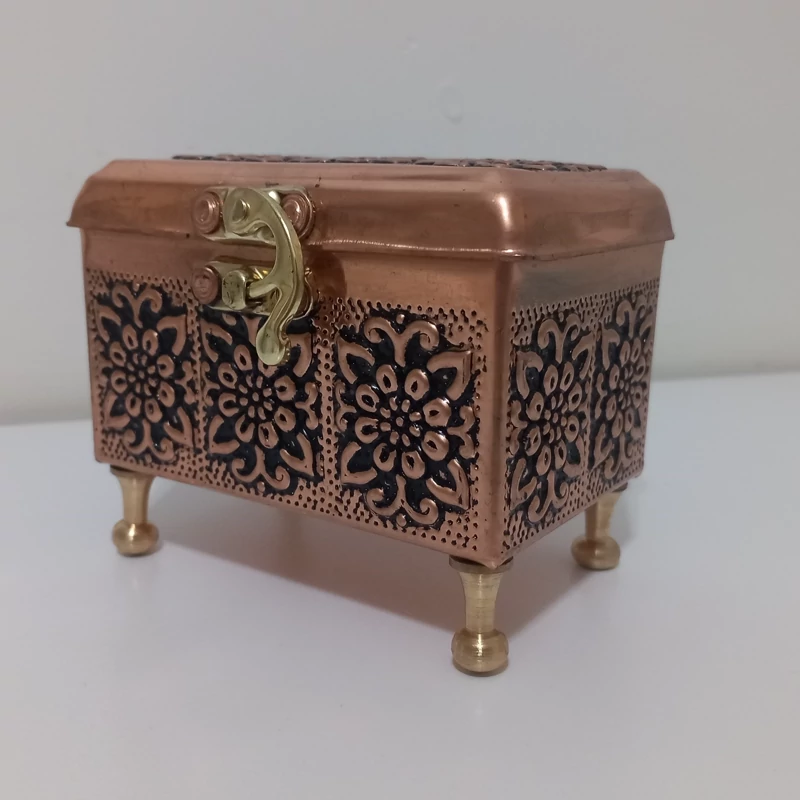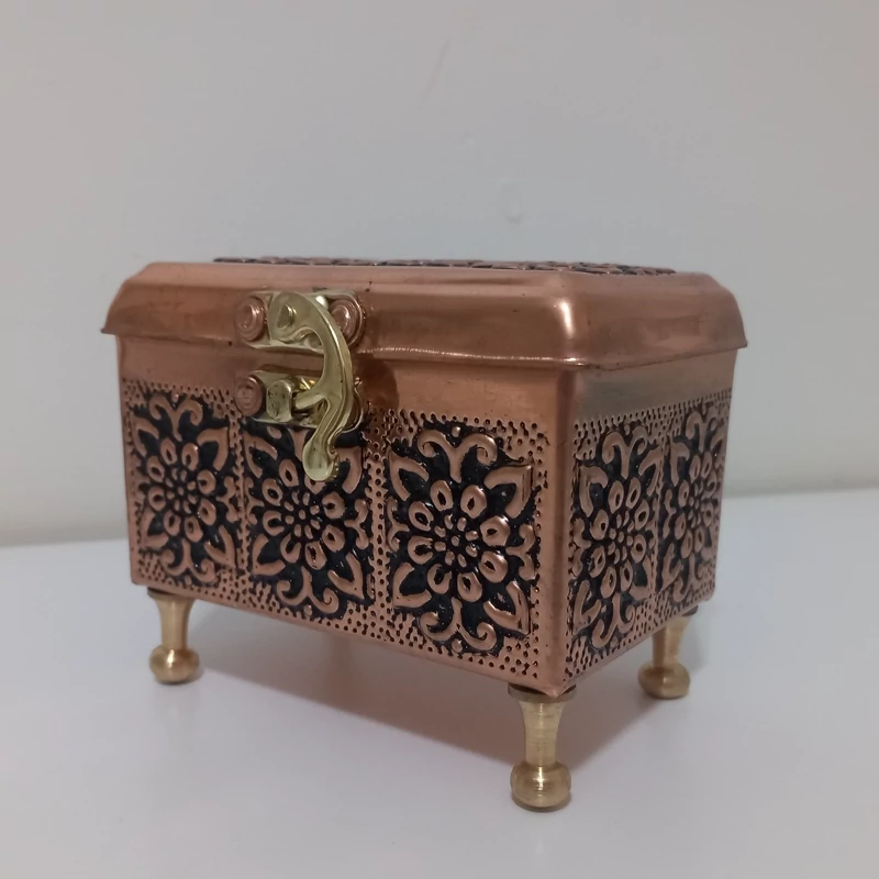 جعبه جواهر تمام مس گلبرگ نانوشده زیبا