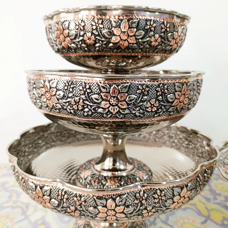 کاسه مسی پذیرایی 3 پایه مناسب آجیل یا شکلات