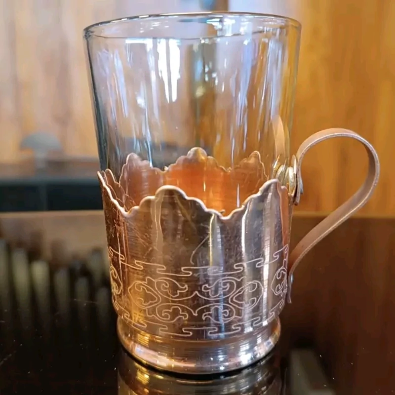 لیوان 6 عددی مس و شیشه جدید کار زیبا