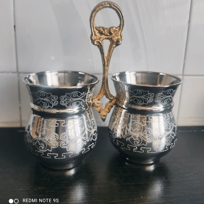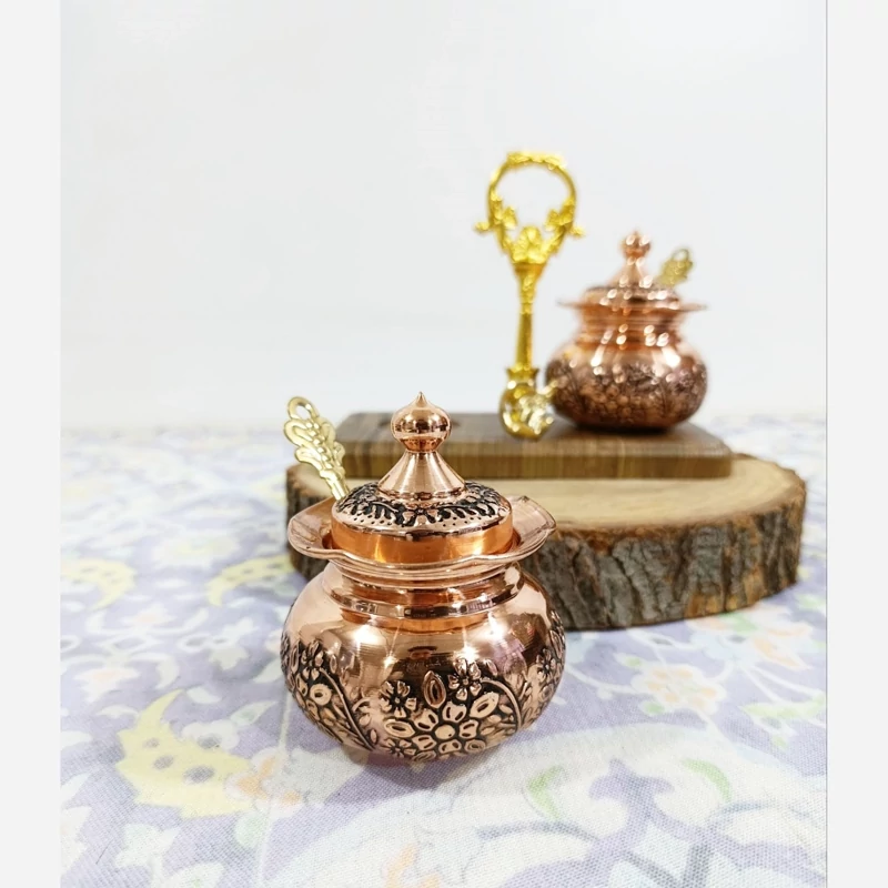 جا ادویه دوتایی تمام مسی قلم کاری قاشق دار نانو