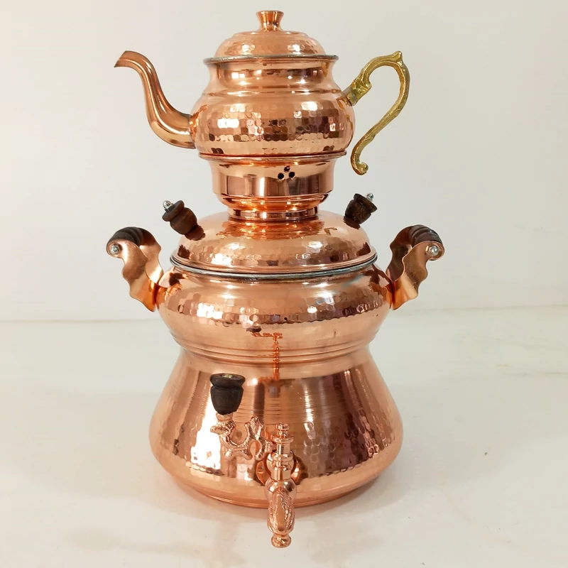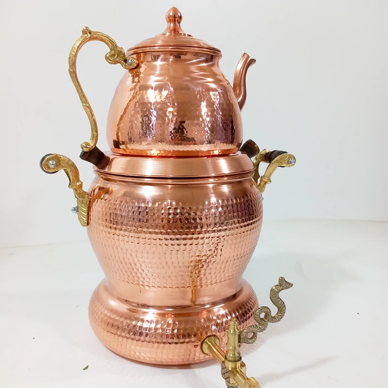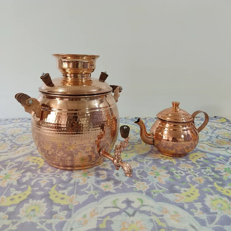 سماور روگازی شیر دار همراه قوری مسی رنگ ثابت و نانو شده مقاوم در حرارت